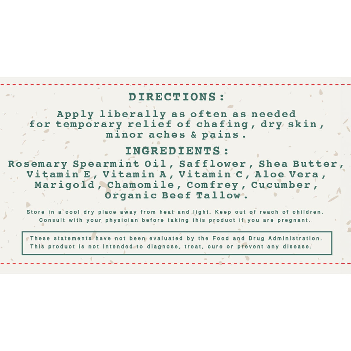 Mom’s Vitamin Tallow Lotion is a deeply hydrating and rejuvenating solution for your skin, designed to infuse your daily skincare routine with the nourishing power of grass-fed beef tallow and essential vitamins. This luxurious lotion is packed with vitamins A, C, and E, which are vital for healthy skin. The inclusion of rosemary and spearmint oils adds a refreshing, invigorating scent while also offering natural anti-inflammatory and antioxidant properties. Whether you're dealing with dry skin, minor irritation, or simply want to enhance your skin's natural glow, this lotion has you covered.